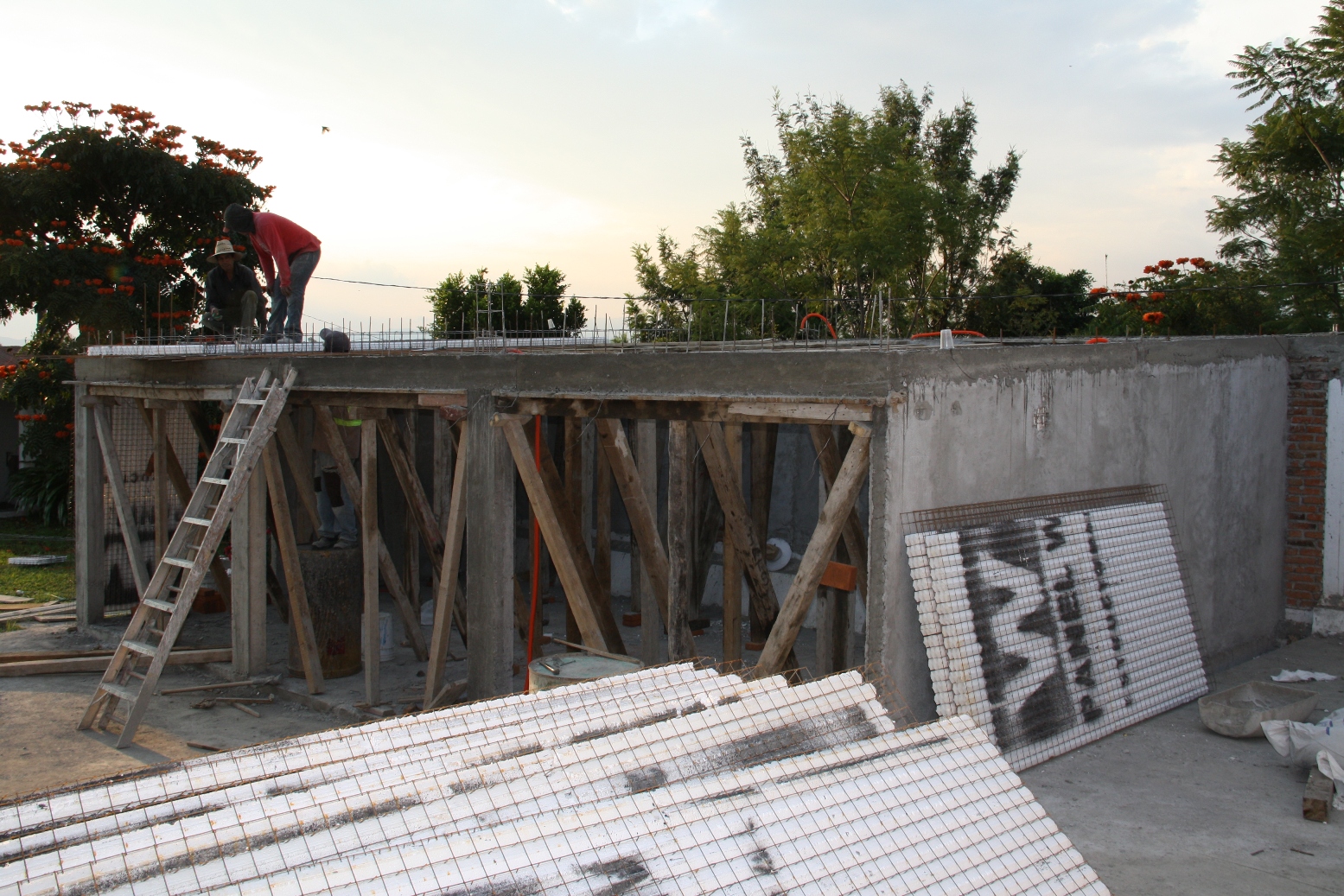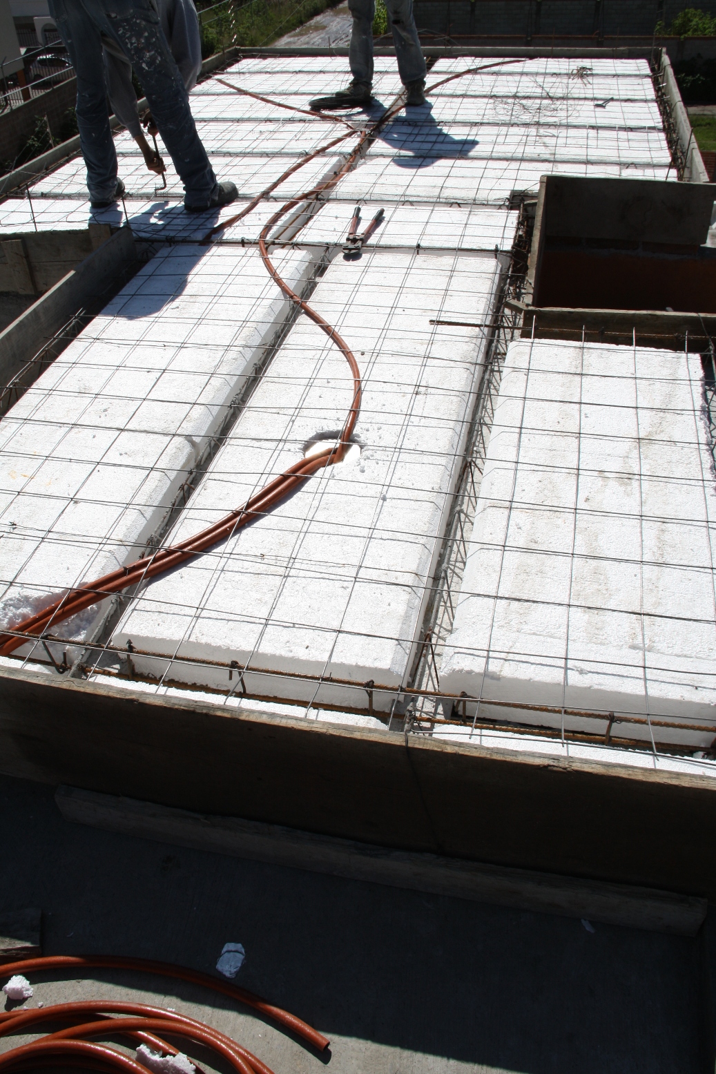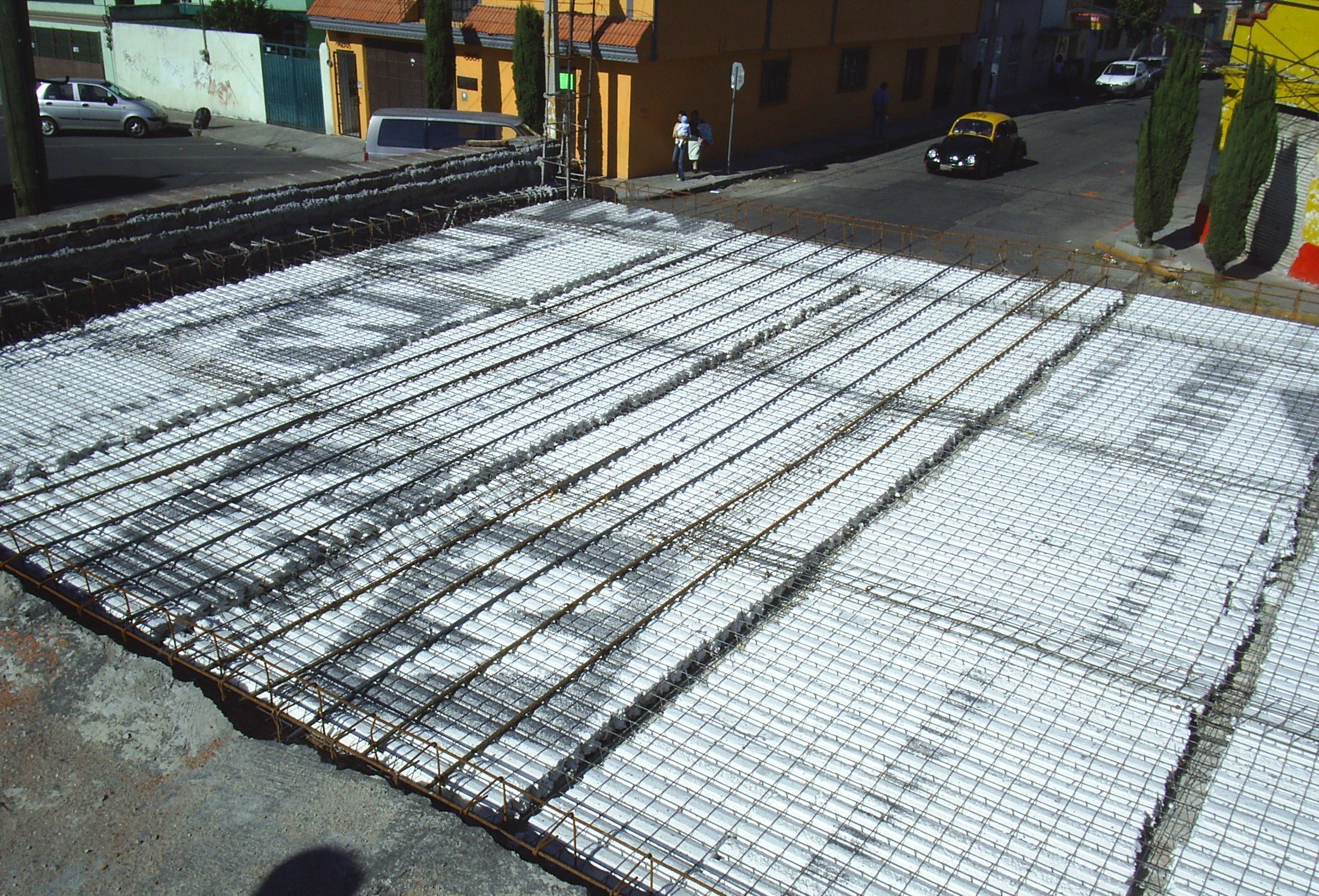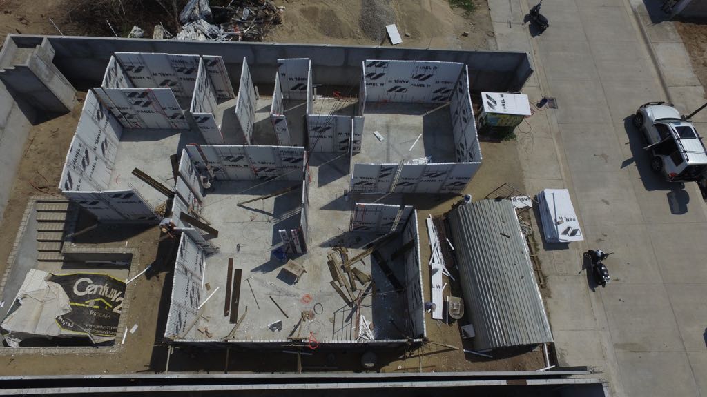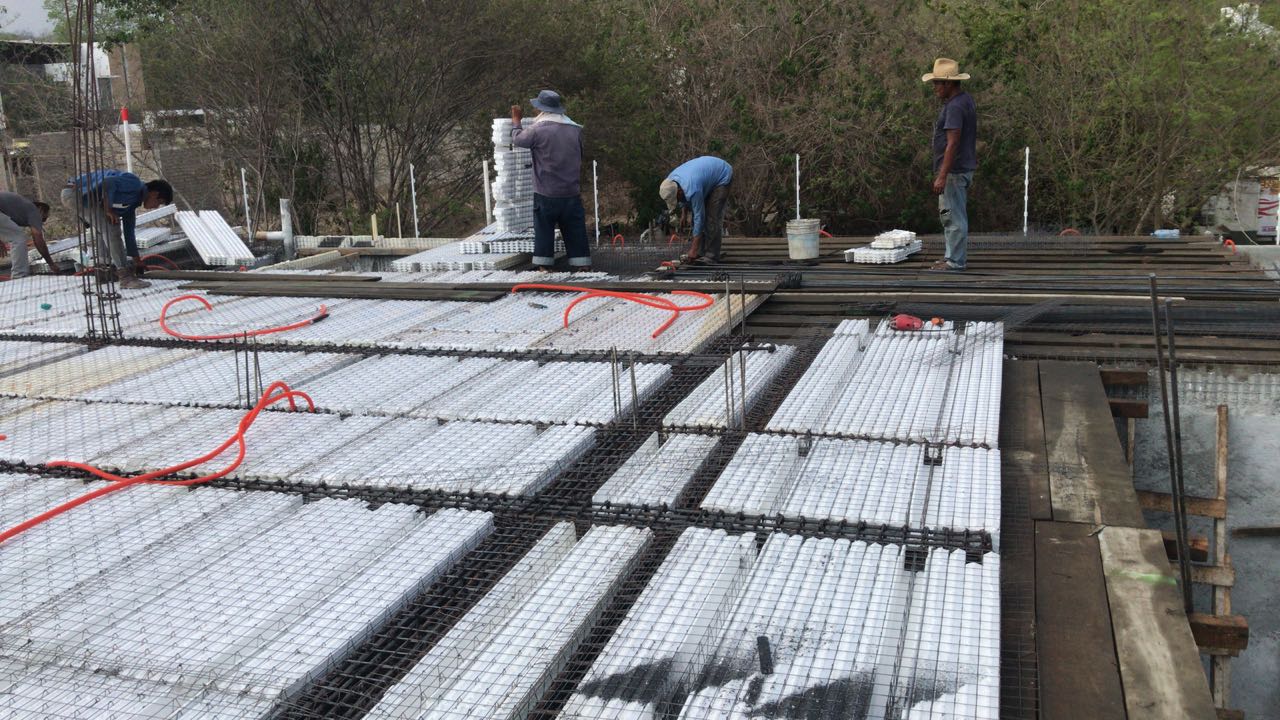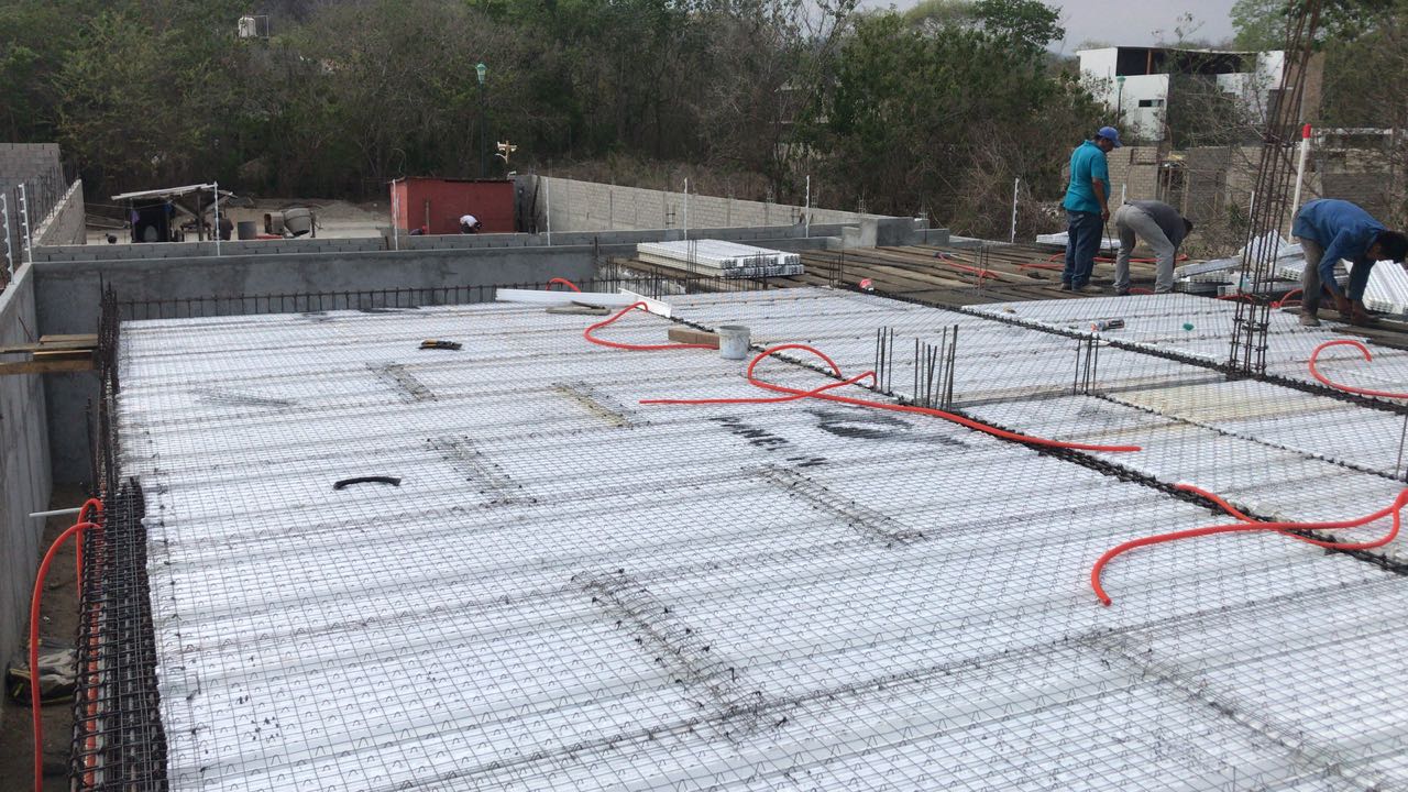 »Con Losas de vigueta de concreto y acero de alma abierta y bovedilla de poliestireno. Cimentación Realizada con Estructura alambrica de Panel W™ Colada con Concreto.