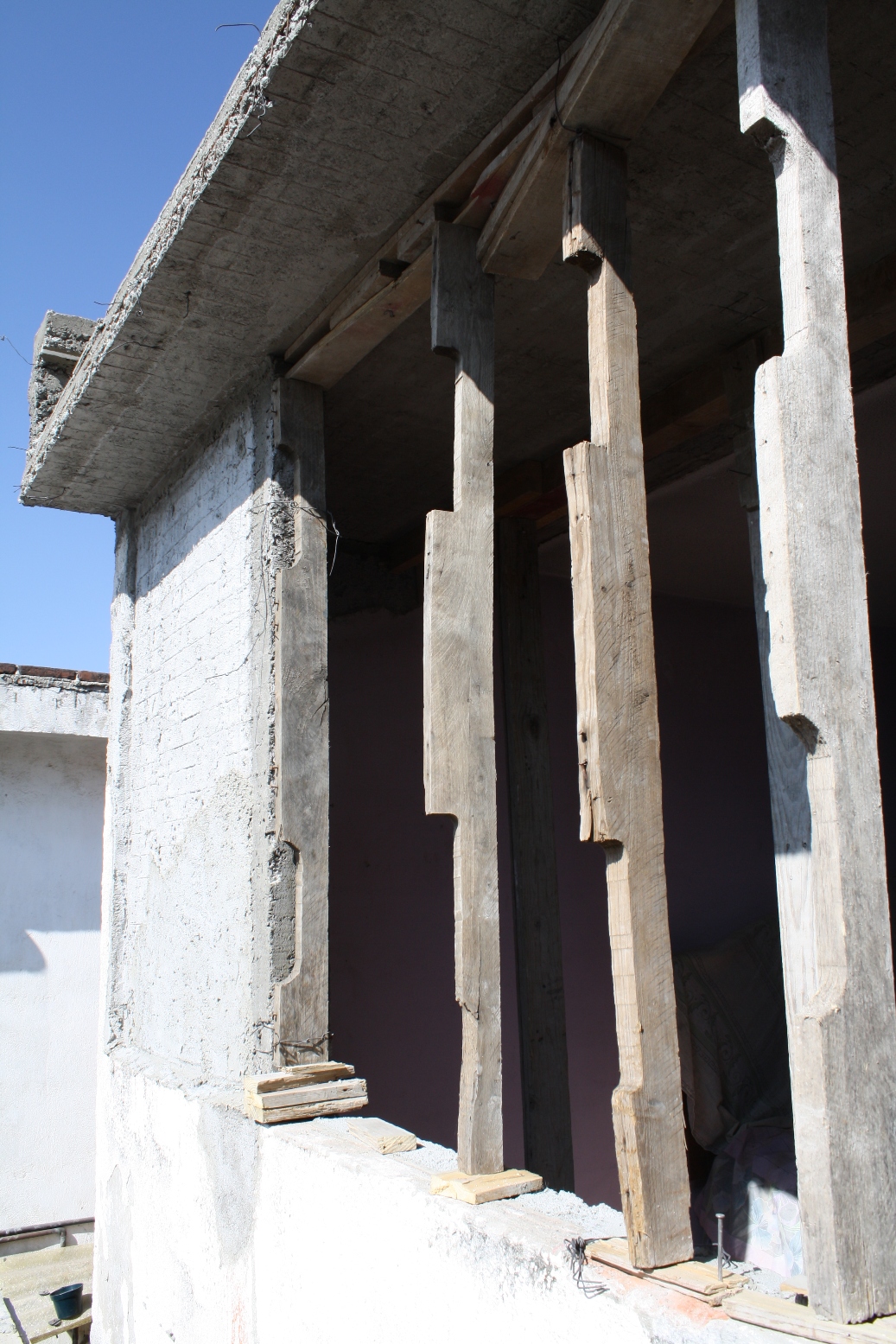 Debido al bajo peso de la ampliación no fue necesario reforzar la planta baja que presenta muy baja resistencia estructural ante un sistema tradicional a base de muro de tabique o block y losas de vigueta y bovedilla de tepetzil.