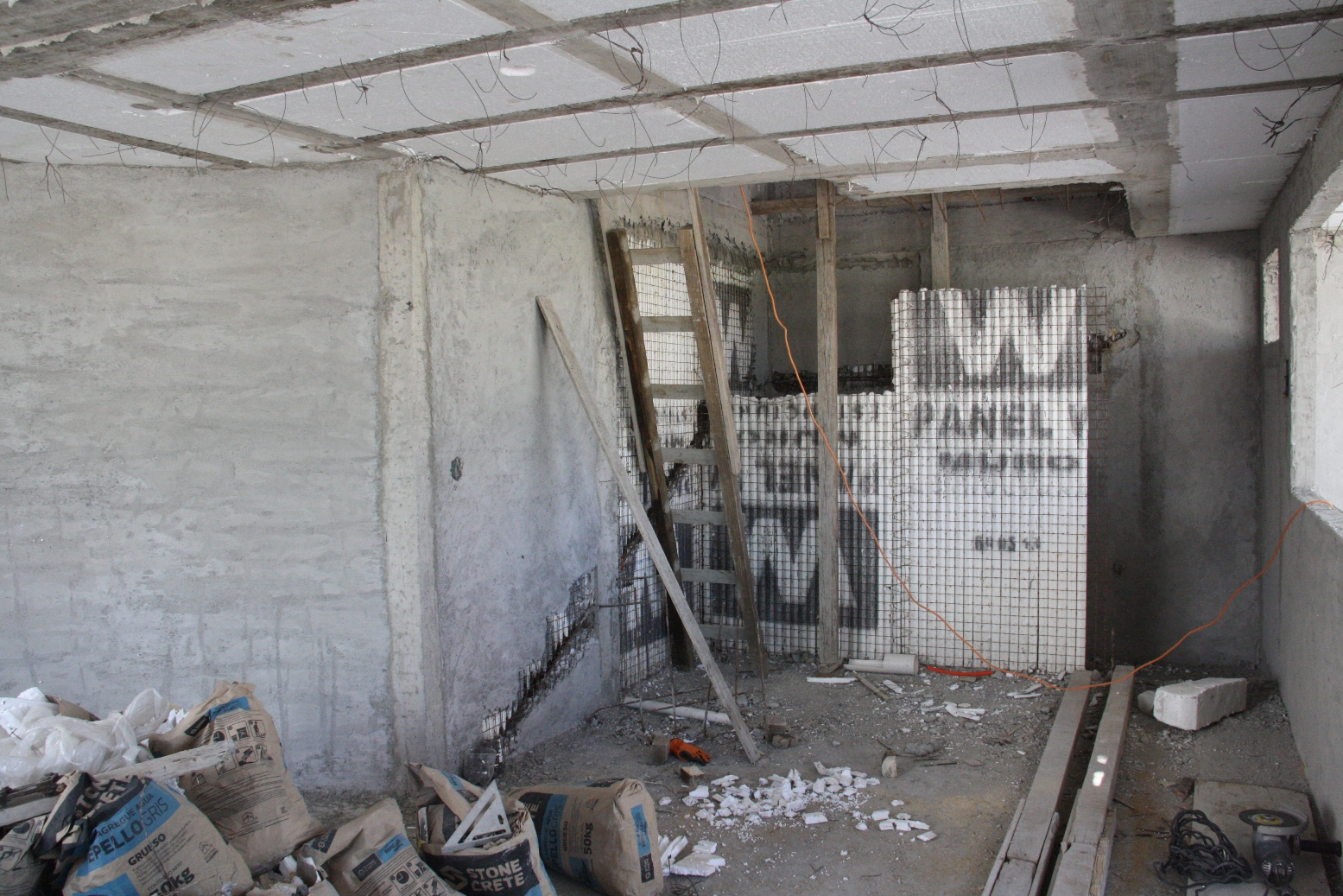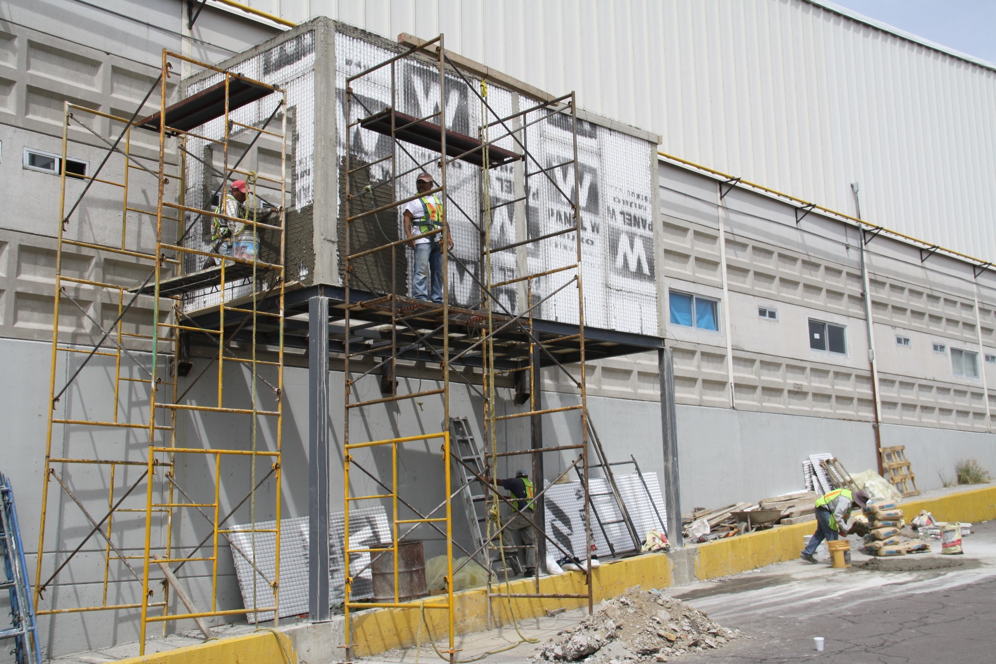 »Sistema de Panel W™ en losa y muros; material de repello y concreto embolsado listo para usar.