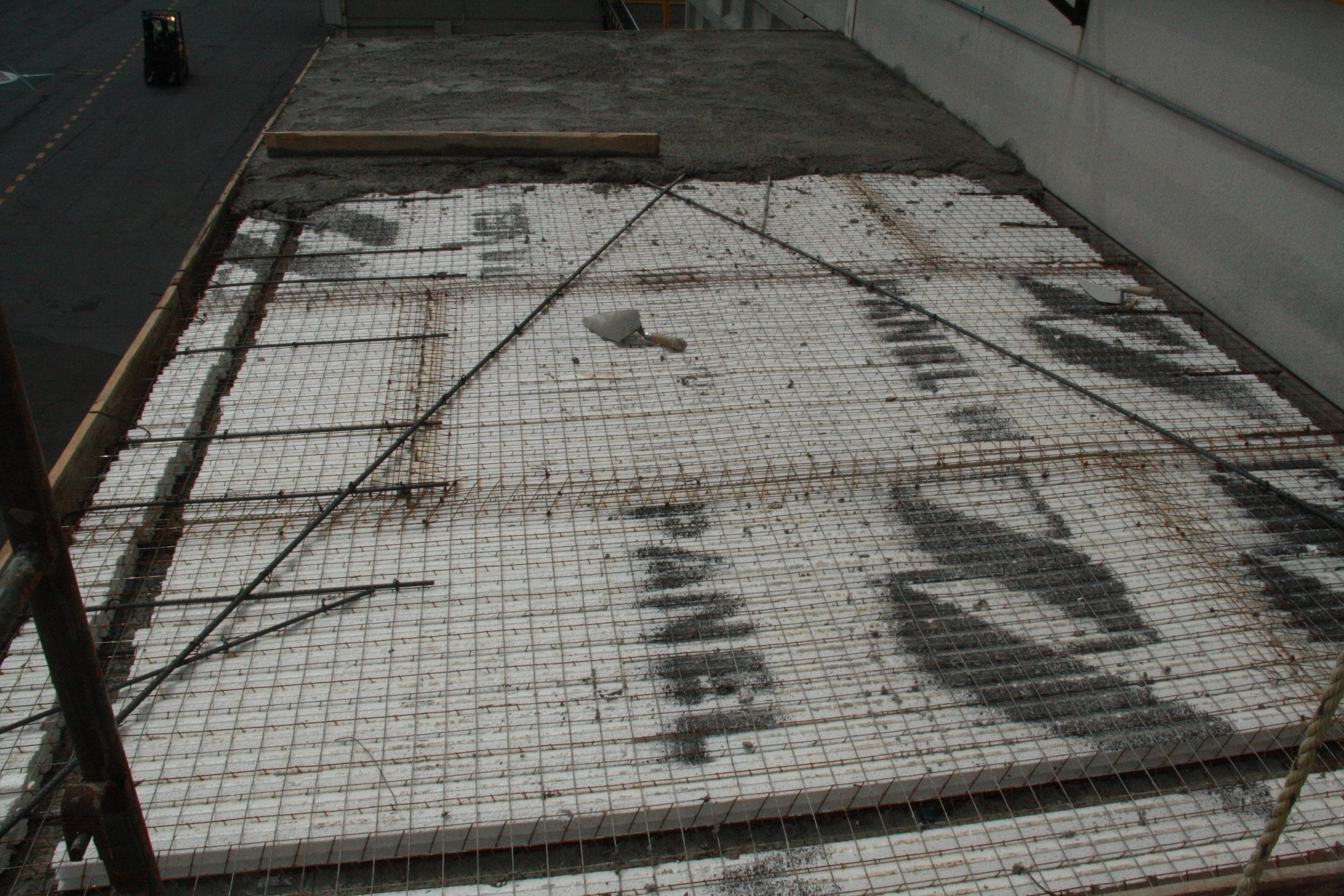 »Sistema de Panel W™ en losa; material de repello y concreto embolsado listo para usar.